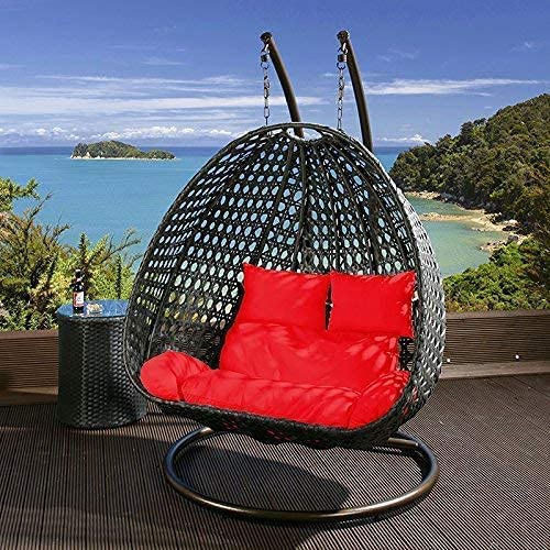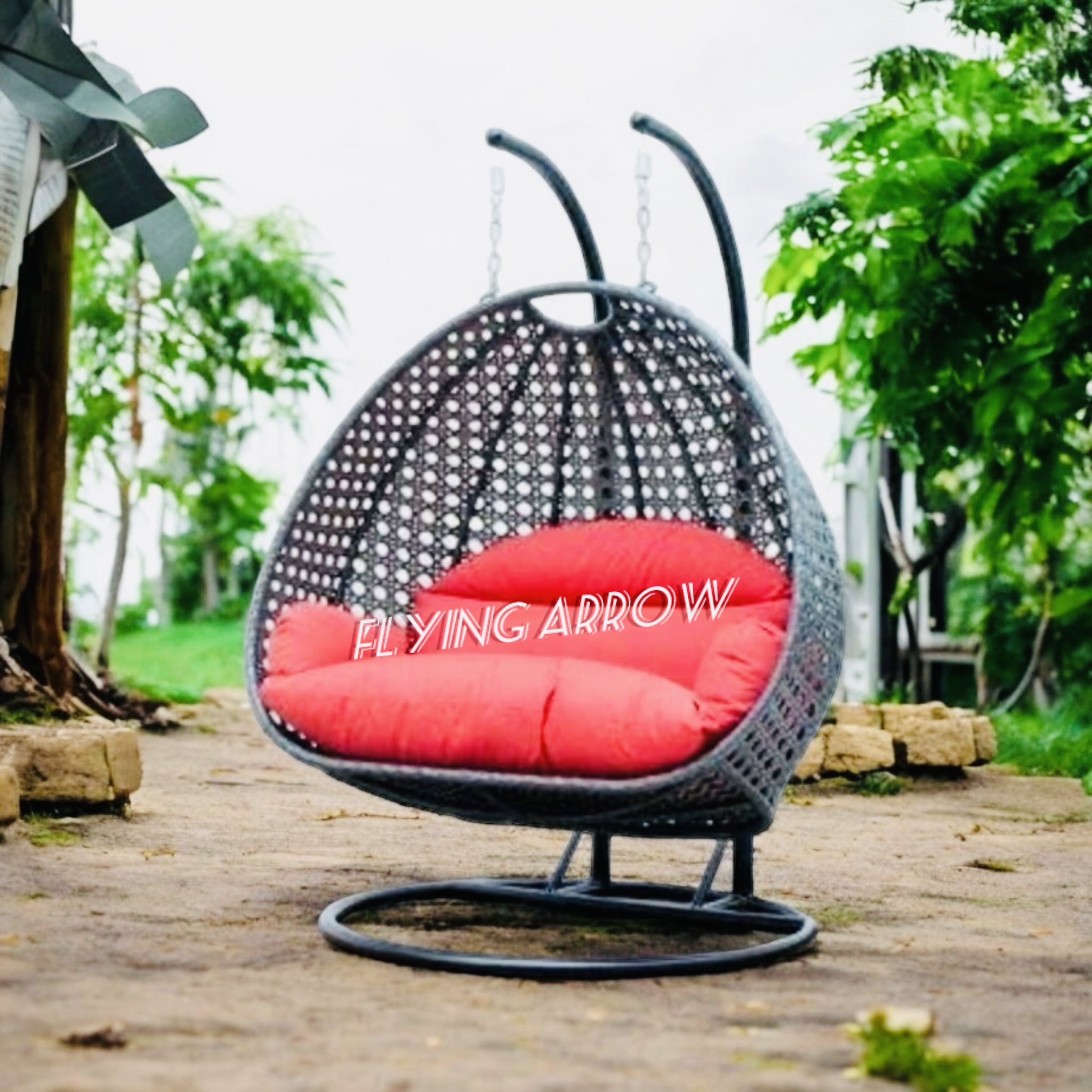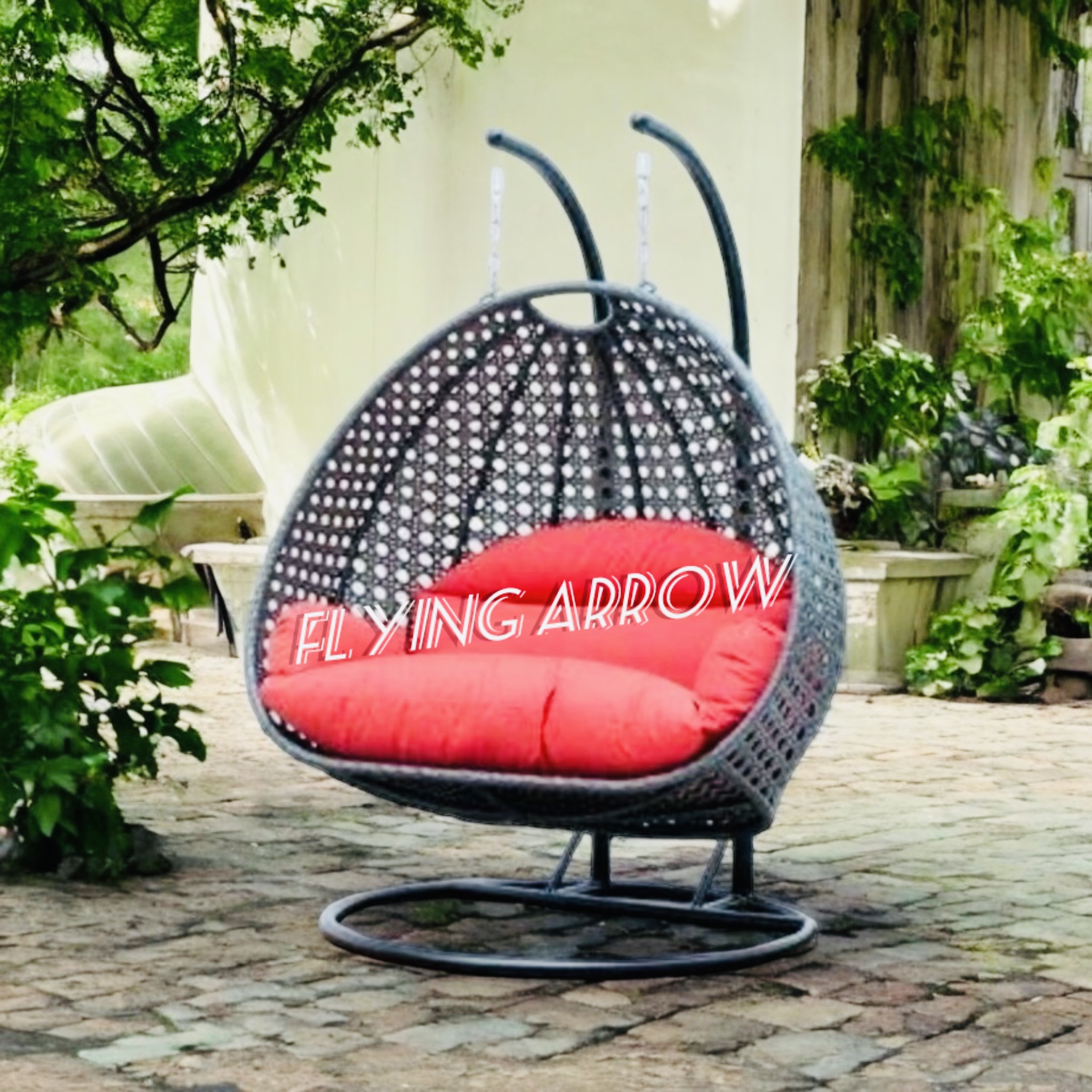 FLYING ARROW DOUBLE SEATER BLACK HANGING SWING WITH RED CUSHIONS