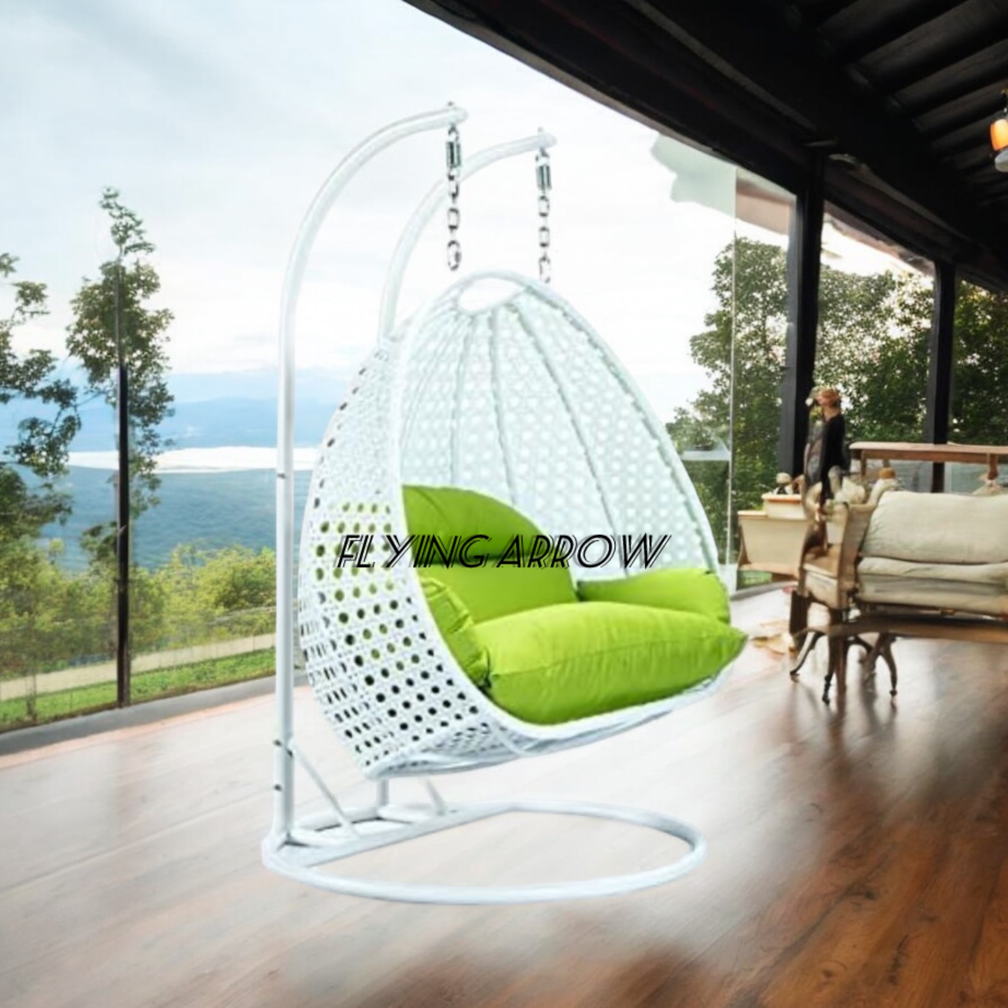 FLYING ARROW DOUBLE SEATER WHITE SWING WITH GREEN CUSHION