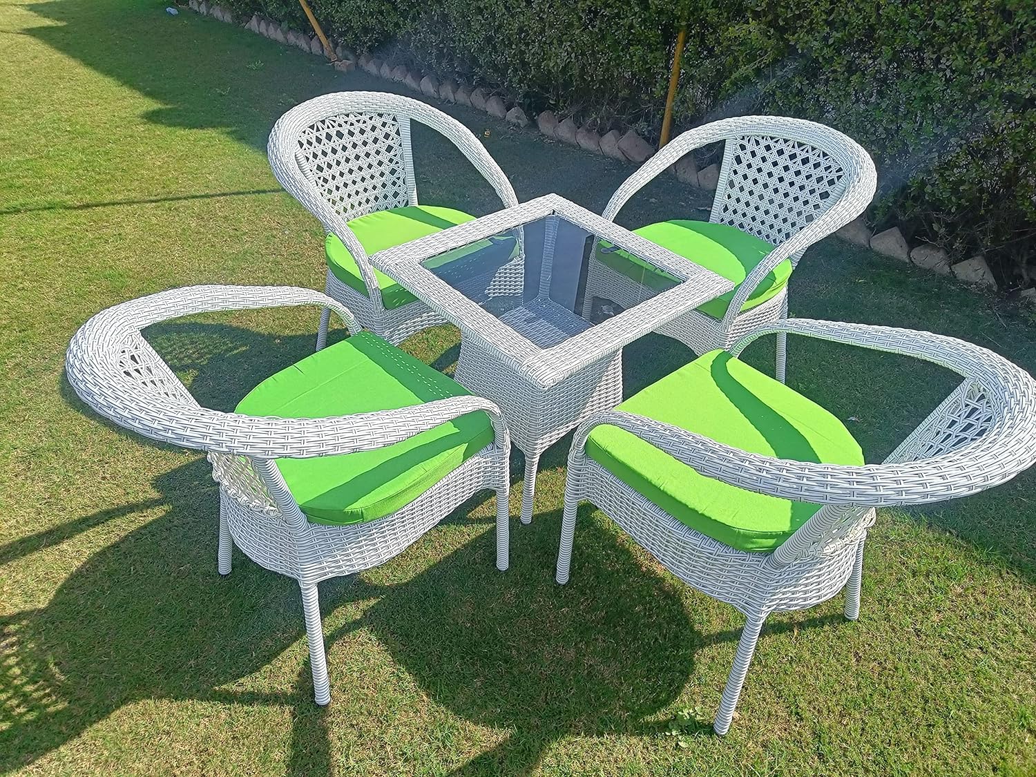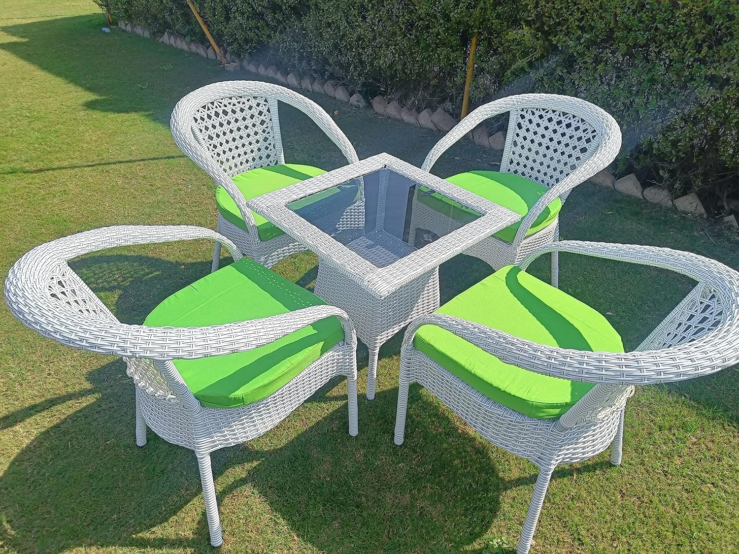 FLYING ARROW OUTDOOR WHITE CHAIR WITH GREEN CUSIONS