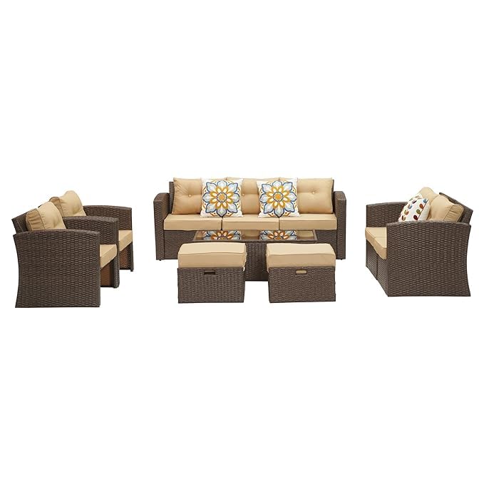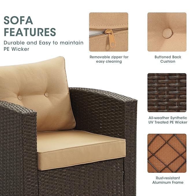 FLYING ARROW OUTDOOR DARK BROWN SOFA SET WITH BEIGE CUSHIONS AND BEAUTIFUL ,COMFORTABLE ,SUSPACIOUS DESIGN