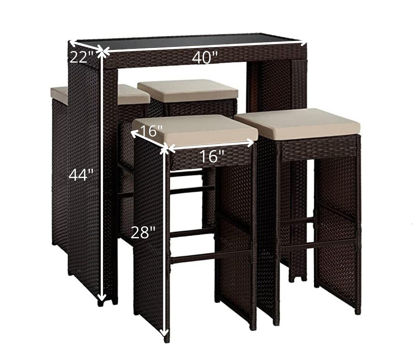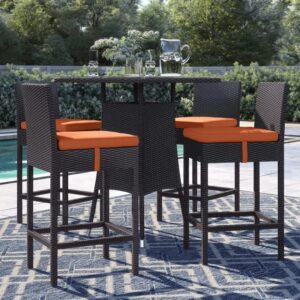 FLYING ARROW OUTDOOR PATIO BAR SETS 4CHAIR AND 1TABLE(DARK BROWN WITH WHITE PILLOW)