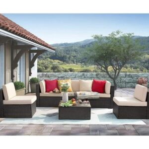 FLYING ARROW OUTDOOR PATIO SOFA SETS(DARK BROWN,WHITE )