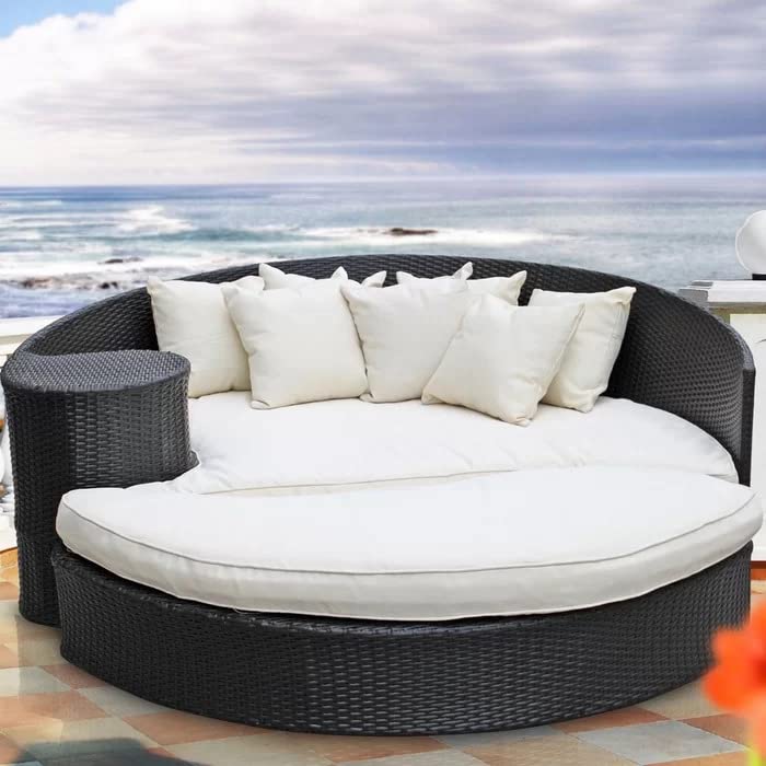 FLYING ARROW PATIO SUNBED ( DARK BROWN BED WITH OFF WHITE CUSHIONS)