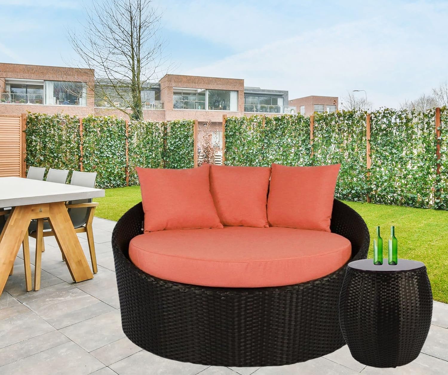 FLYING ARROW PATIO SUNBED (DARK BROWN SUNBED WITH ORANGE,GREY CUSHIONS)