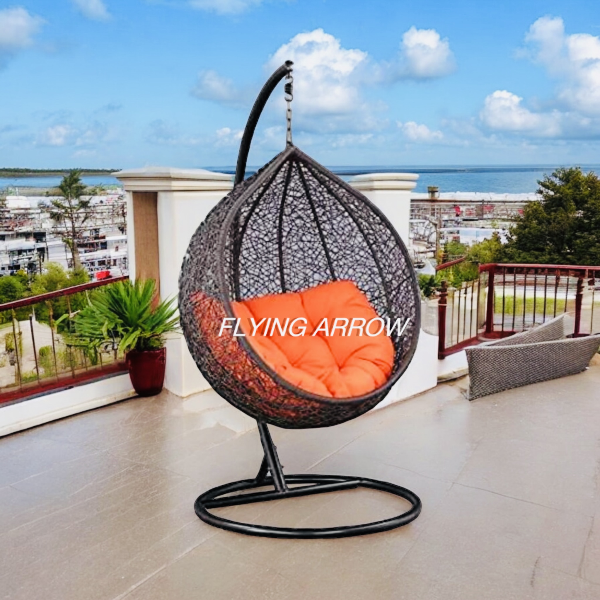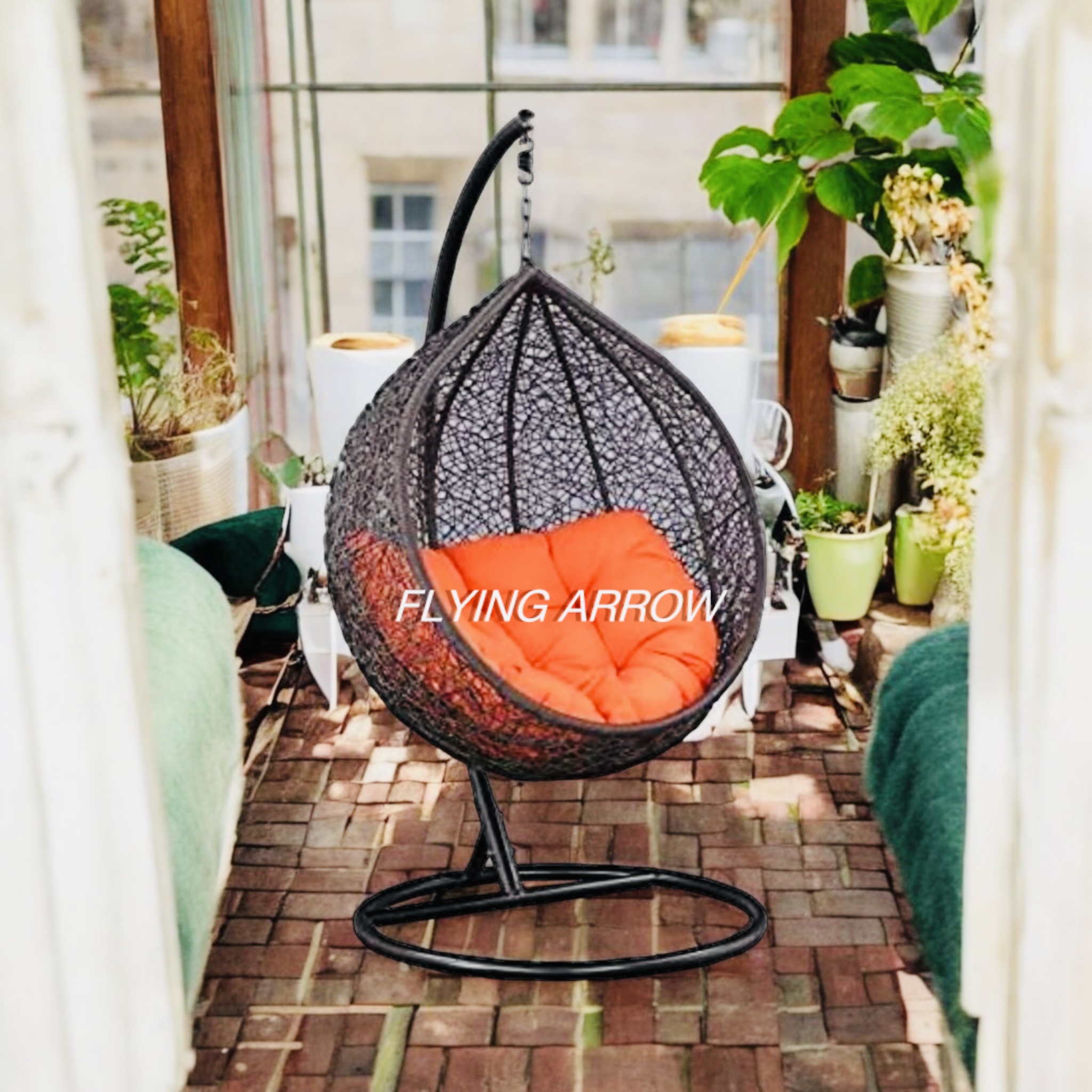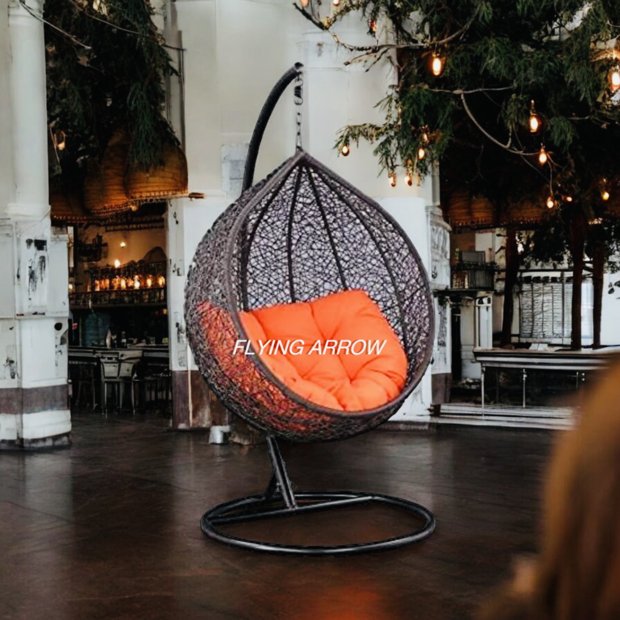 FLYING ARROW SINGLE SEATER BLACK SWING WITH ORANGE CUSHION