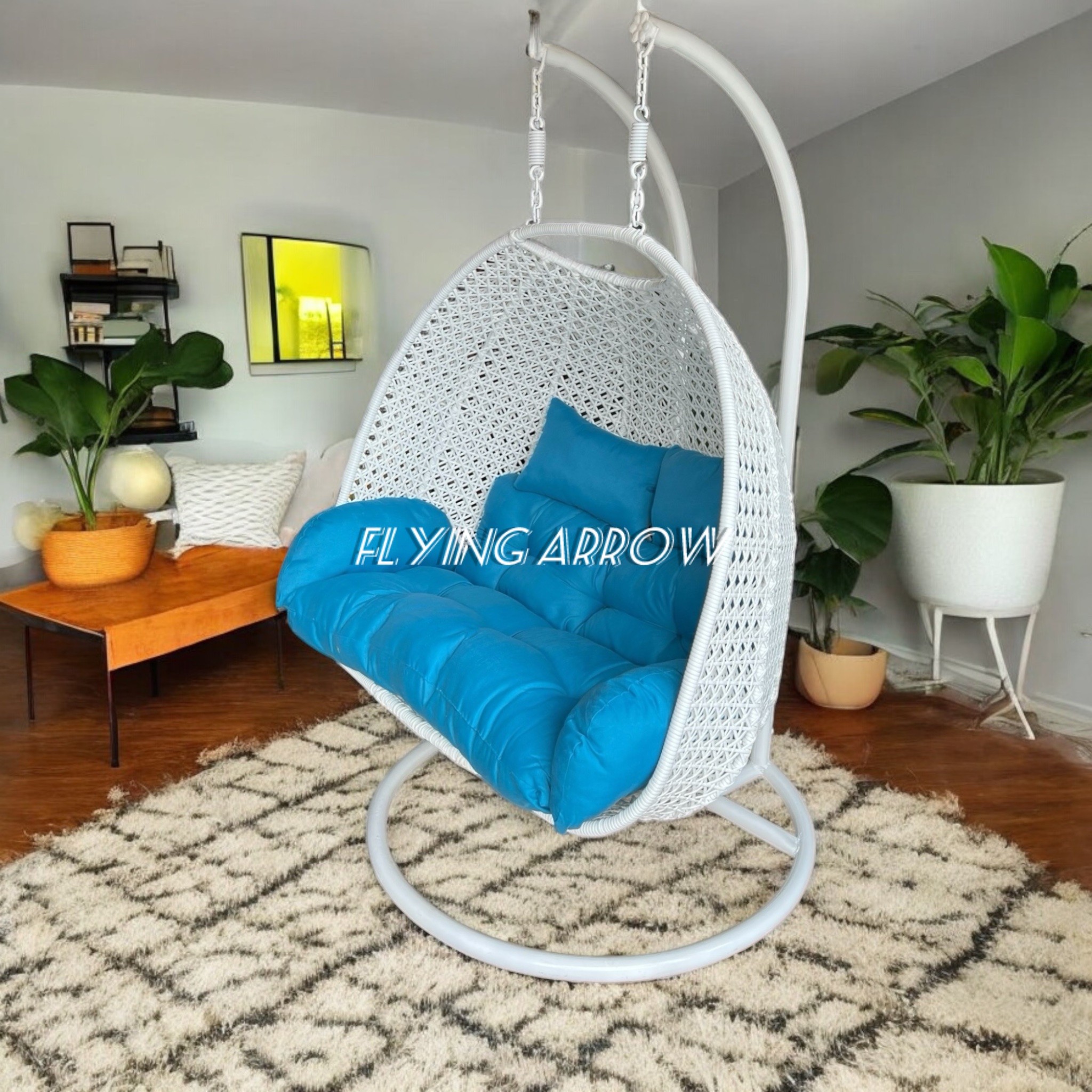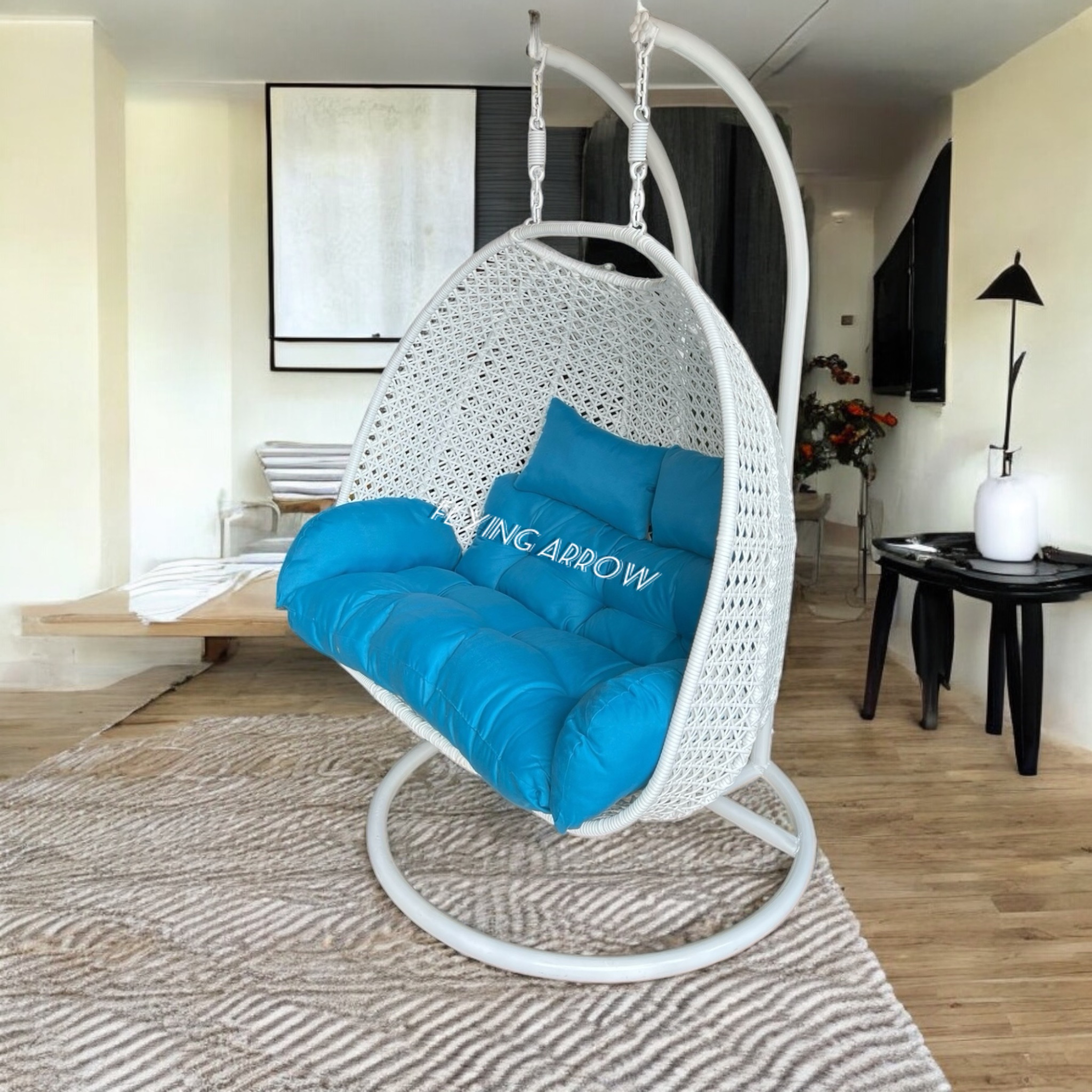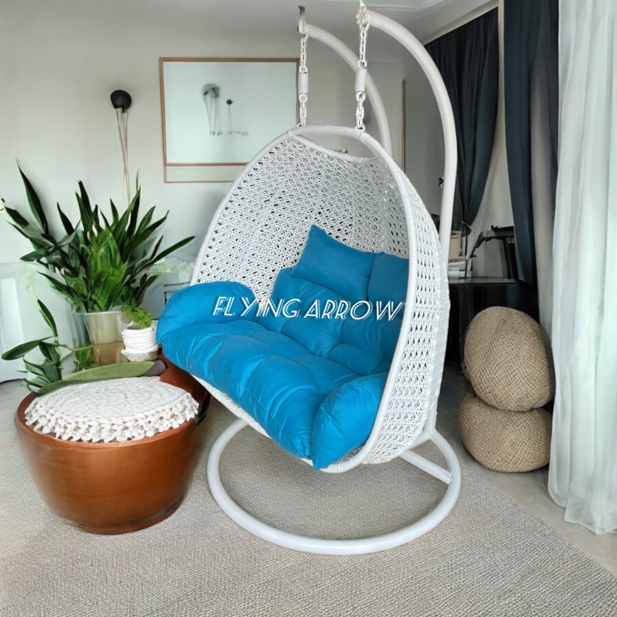 DOUBLE SEATER HANGING SWING WHITE SWING WITH BLUE CUSHION