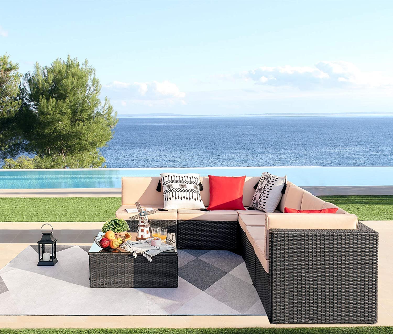 - 1. Durable- Rattan material of this outdoor sectional sofa set is elegantly woven over sturdy, powder-coated, rust-proof metal frames that offer extreme support and durability.