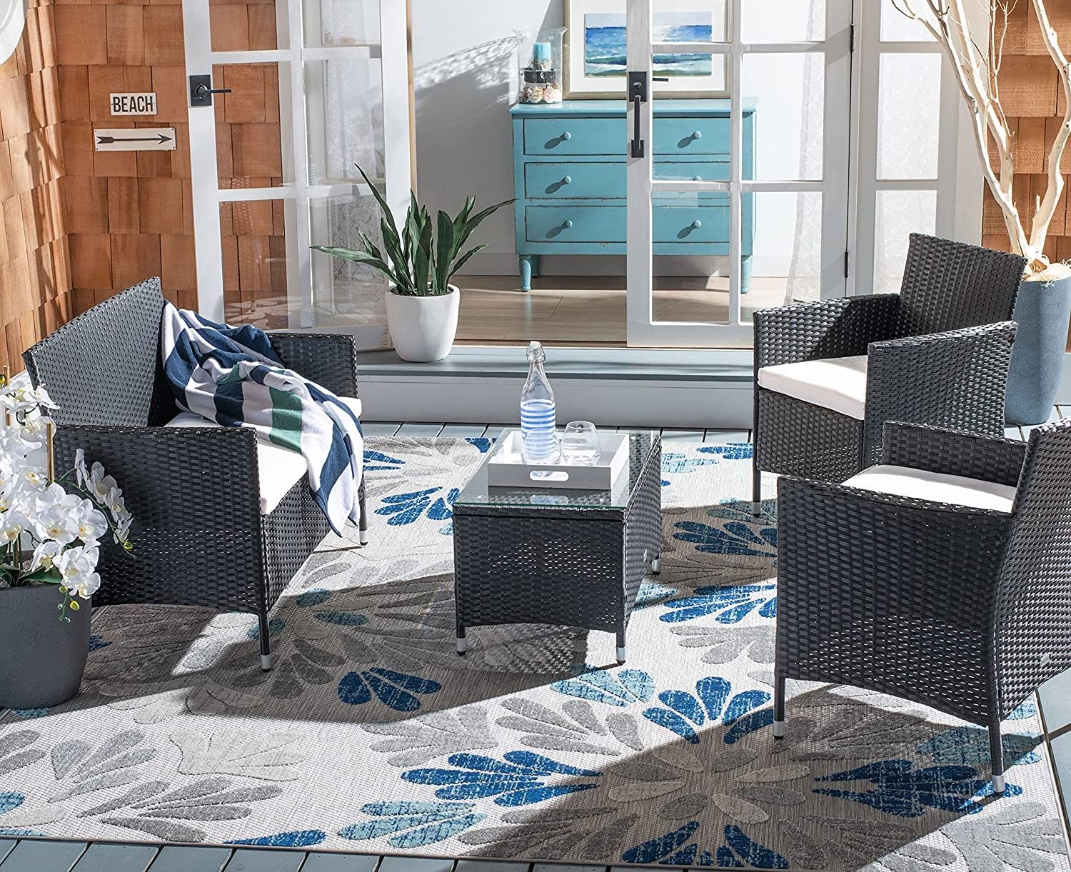 • The set comes with a center table that complements the sofa design. The table provides a convenient surface for placing snacks, drinks, books, or other items, making it easier to enjoy outdoor relaxation without constantly getting up.