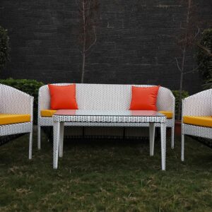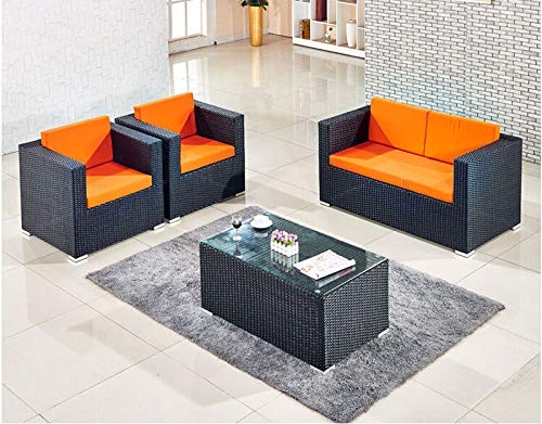 Dark Brown Coloured Sofa Set With Orange Cousions And Comfortable Spacious Modern Design And Long Term Investment