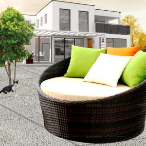 FLYING ARROW PATIO SUNBEDS (BROWN BED WITH OFF WHITE CUSHIONS )